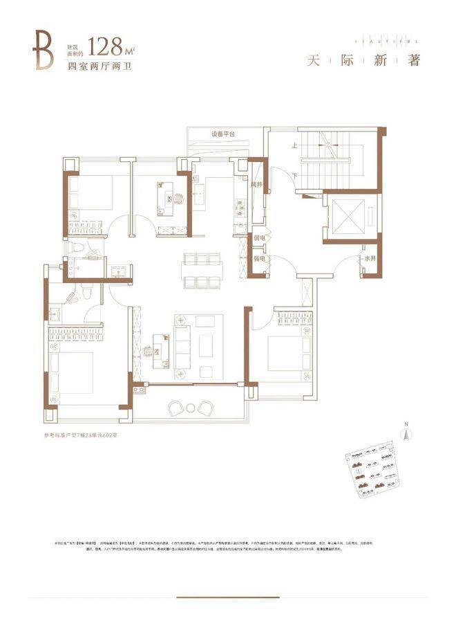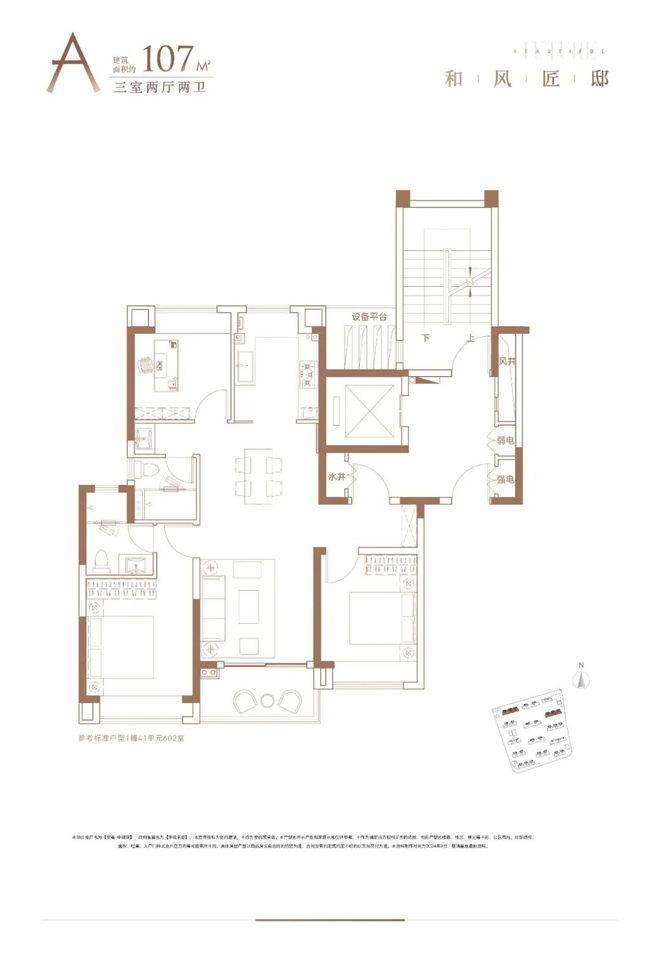 该户型在约107㎡户型基础上有所提升,增加了1个北向卧室空间,更适合三代同堂或多孩家庭改善居住~