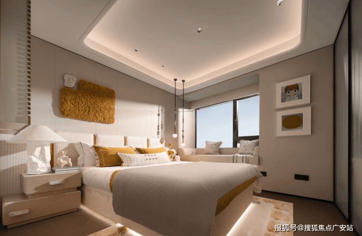 南向卧室的设计更是点睛之笔,通过可开可合的移门,与客厅上演空间魔法,实现卧室、开放式书房、客厅延伸区的三重空间形态。