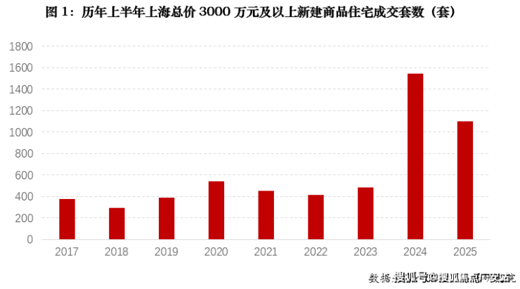 数据显示,2025年上半年,上海总价3000万元及以上的新房成交量高达1096套,若将近两年上半年均值与2017-2023年均值对比,交易量增速竟达到惊人的214%。