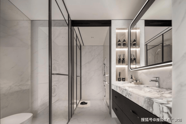 细节里的“痛点杀手”:对标五星级酒店的四分离公卫,把洗漱、如厕、淋浴、洗衣彻底分区,搭配汉斯格雅花洒、伊奈智能马桶,解决多人口家庭“早高峰抢厕”难题;博洛尼定制橱柜藏着转角拉篮、下拉式收纳,过道隐形储物柜与主卧步入式衣帽间,让“家里无杂乱”成为常态。