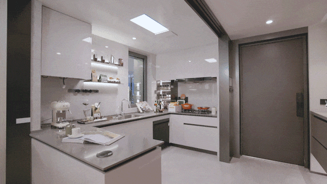 可开放的U型厨房,就算在厨房忙碌的人再多几个,也丝毫不耽误。德系精工品牌西门子的抽油烟机和灶具,洗碗机为方太高端系列,一个厨房的交付标准,可能就会给大家值得的直观感受。