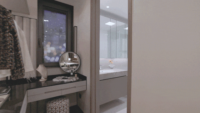 主卫内的松下智能马桶、嵌入式壁龛、美妆冰箱……所看到的一切细节,都完整交付。