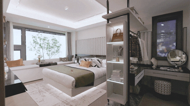 主卧套房设计,私享衣帽间,独立卫浴,瞰景飘窗,仪式尊贵和私密精致得到了细心呵护,缔造主人舒缓自在的生活日常。