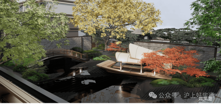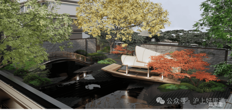 除了“风雅三进”的归家礼序外,整个社区内还有“行舟六幕“的景观营造,取天时、地利、人和的寓意,匠筑青浦独有的东方墅境生活。