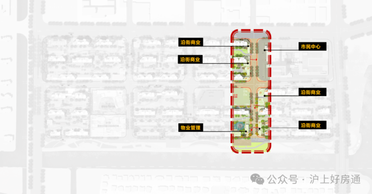 一街为活力商业街,通过纵向布局,在街道两侧配上丰富立体的商业,包括沿街商业、邻里中心、乐活商业街等,满足居民日常的需求。
