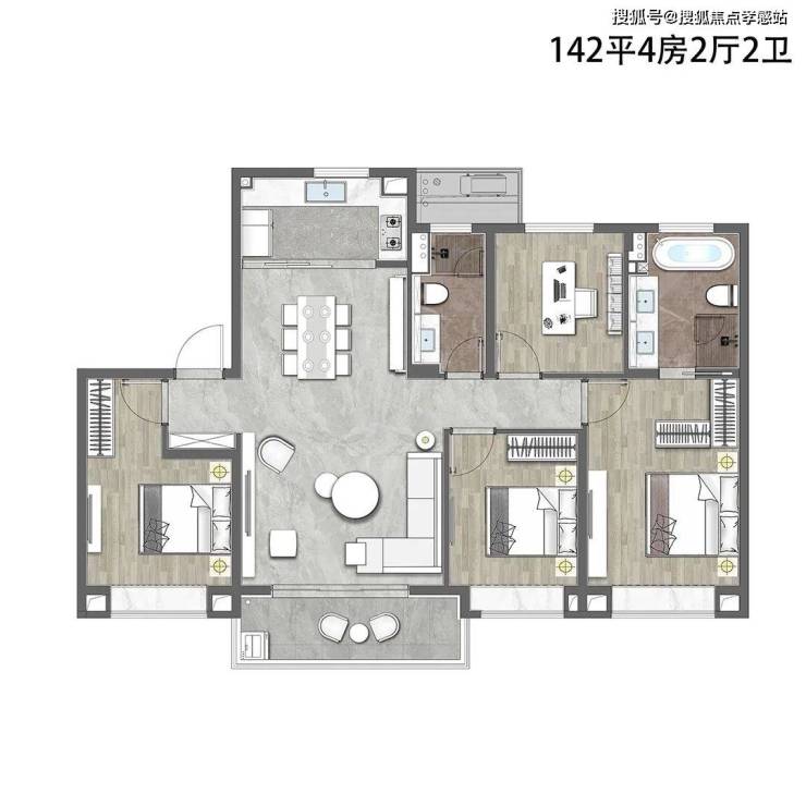 产品方面,项目主推建面约99㎡3房2厅2卫、约114㎡3房2厅2卫及约142㎡4房2厅2卫,均价约99000元/㎡,总价约868万起
