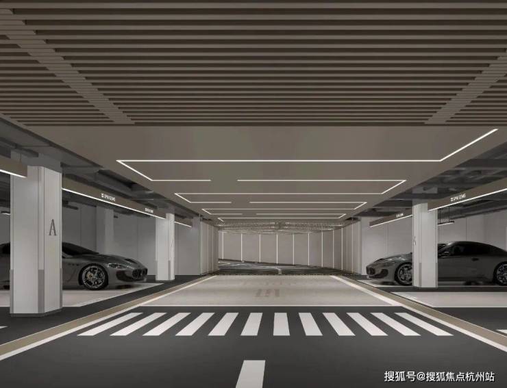 另外,精装地下车库做了时下流行的星空顶设计,显得非常现代精致,部分联排也是直通地库。