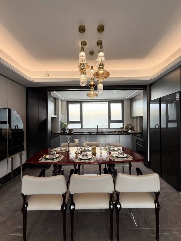 南向大横厅,用光线阐述空间的舒适度与高级感,U型中厨搭配多功能开放西厨,满足世界级美食品位。