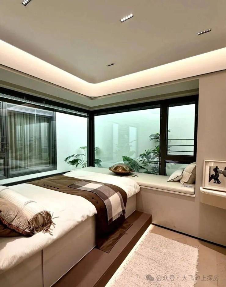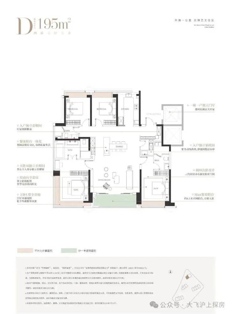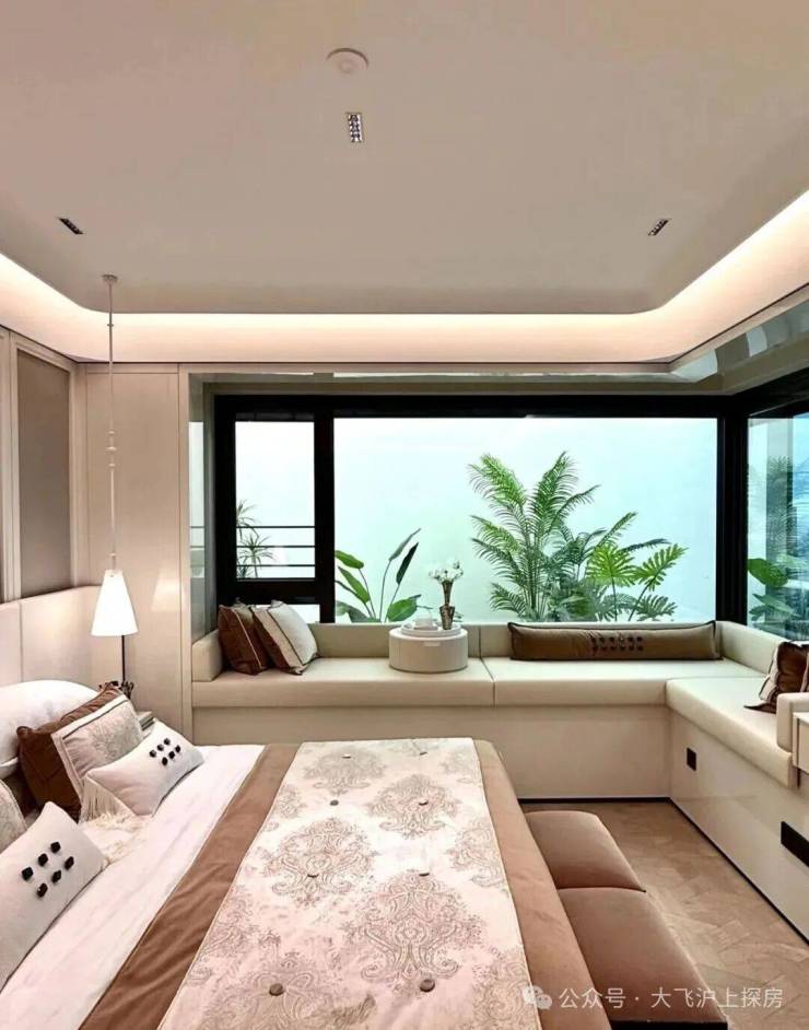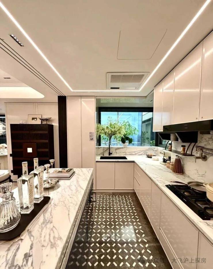 大横厅尺度感奢阔,尊享私梯入户,隐私性满分!三间卧室朝南设计的平权户型,老人、小孩均可享受南向采光;厨房转角窗、主卧套房、北向书房均配置270度转角飘窗,景观视野相当不错!次卫四分离设计,相当人性化~