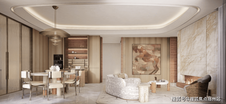约 35㎡奢阔客餐双厅 ,奢阔尺度足以容纳 10人的盛宴,让大家族的温馨互动与雅仕层峯的社交宴请于此从容上演。