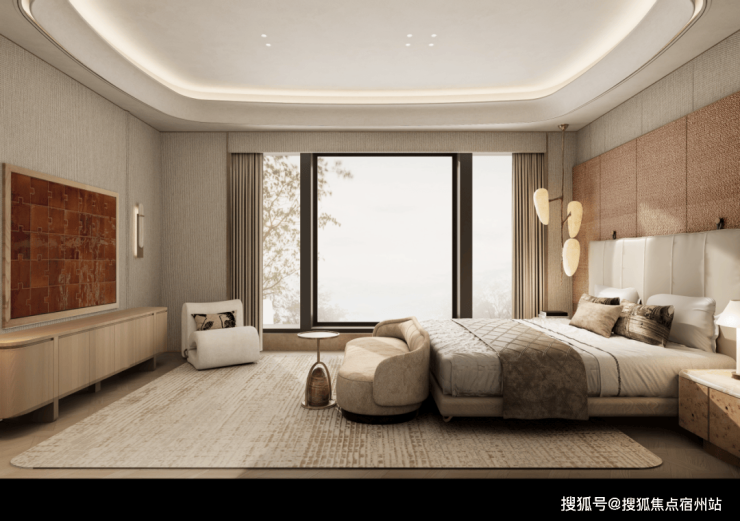 主卧建面约 25㎡ ,自成一方小天地。除了设计有干湿分离的卫浴空间,还特别打造了步入式衣帽间,满足主人的 “收藏欲”;加之南北通透的布局,连接双联阳台,阳光浸润生活,清风鲜活呼吸。