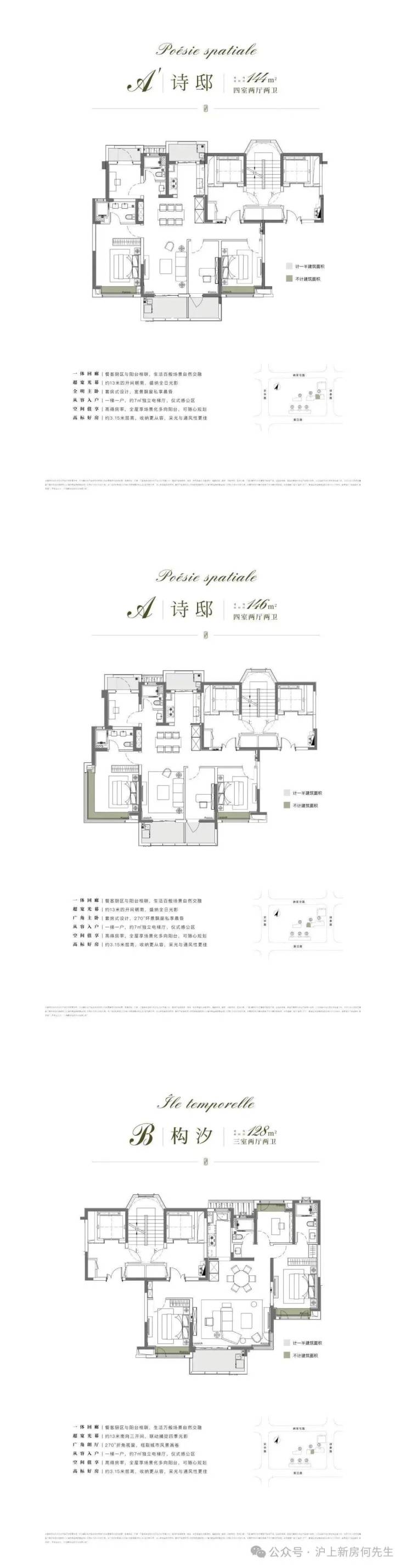 大虹桥徐泾新盘【灿辉·晶萃173】,即灿耀星城四期项目,售楼处及样板间现已开放!项目主力户型建面约116-146㎡3-4房,打造【晶】系法式作品,项目全套户型图+效果图过程稿现已出炉!