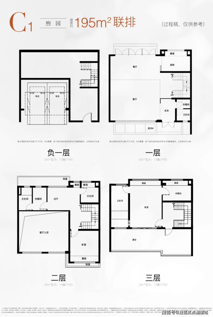 建面约195㎡的C1户型,尺度更加惊人,墅居体验堪称“庄园式”!