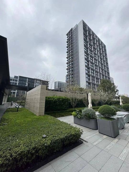 项目位于浦东雪野路999弄,紧邻世博文化公园(直线约800米),北望黄浦江,西接前滩商务区,东连张江科学城,地理位置得天独厚。社区规划容积率仅2.5,建筑密度25%,由高层公寓与低密洋房组成,外立面采用铝板与low-e玻璃组合,呈现现代简约美学。中央景观花园由国际团队SWA设计,打造“一湖双园”立体绿化体系,配合约3万平方米社区园林,形成“城市公园+社区生态”的稀缺配置。