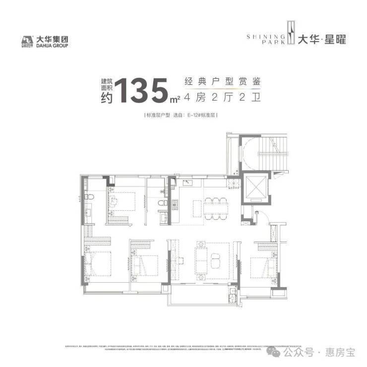 但大华星曜建面约120㎡就做了真四房的设计,保证了户型的实用性。