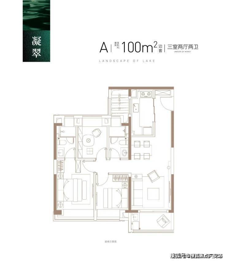 建面约100㎡3房2厅2卫,做到了三开间朝南+主卧套房设计+动静分离+全卧室带飘窗,功能性和尺度感完美结合的3房户型。