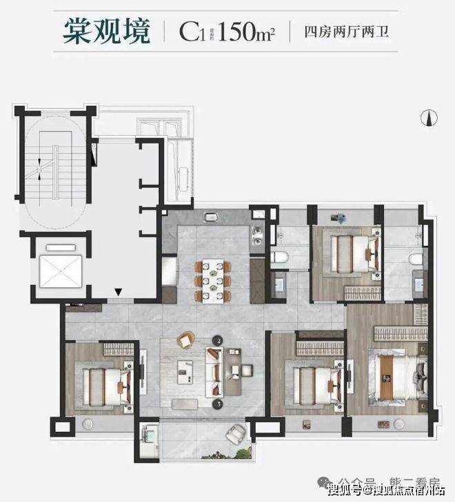 约150㎡4房2卫户型类一梯一户的居住体验,业主能独享一整个电梯厅,加上入户玄关的配置,私密性相当高印象青城售楼处电话:400-8787-740 (一对一解答,欢迎咨询)