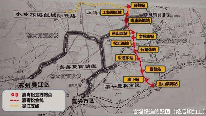 另一方面,根据《上海2035规划》,市域线嘉青松金线(规划中)作为一条贯穿嘉定、青浦、松江、金山的轨交线,即将为白鹤扭转当前无轨交过境的处境。根据青浦区2035规划,嘉青松金线青浦区的线路走向已经非常清晰明了。该线路向北可能在安亭站与轨交11号线形成对接、向南会在青浦新城站与轨交17号线、上海示范区线交汇,然后连接松江、金山。嘉青松金线贯穿白鹤镇,设置有站点,未来近享规划红利。