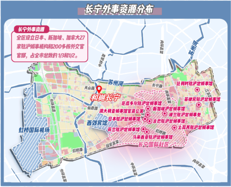 现有28个领事馆驻扎,聚集了全市三分之一的外国领事馆和一半的外交官邸。
