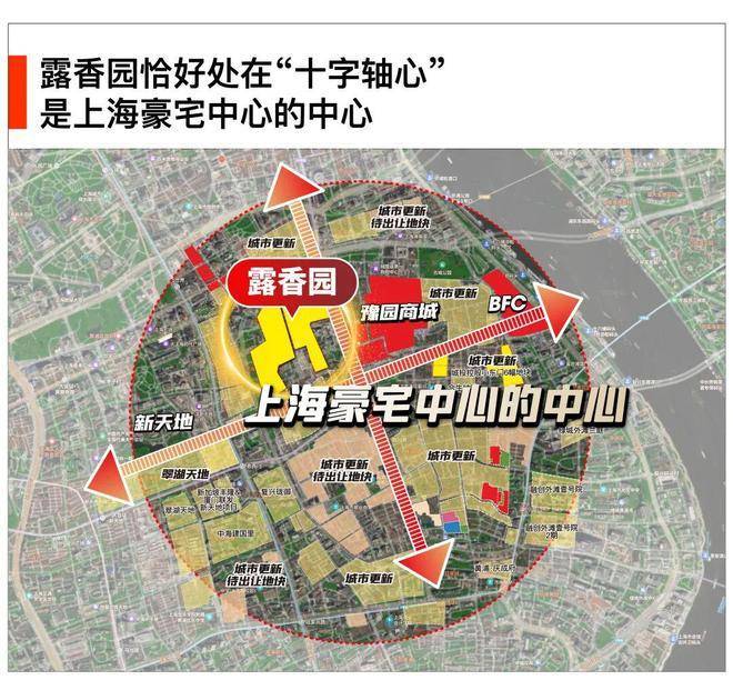 而如今的露香园,不仅手握历史,更将成为城市更新后崭新黄浦核心,北邻嘉里金陵东路,东接小东门6幅黄金地块,南连乔家路历史风貌保护区,西望翠湖天地。当这些更新项目连成一片,露香园恰好处在 “十字轴心”,是上海豪宅中心的中心。