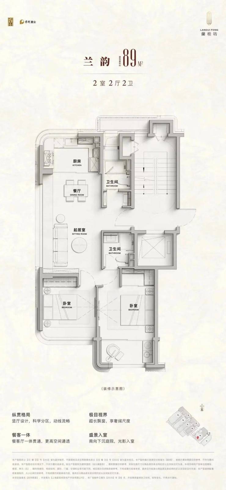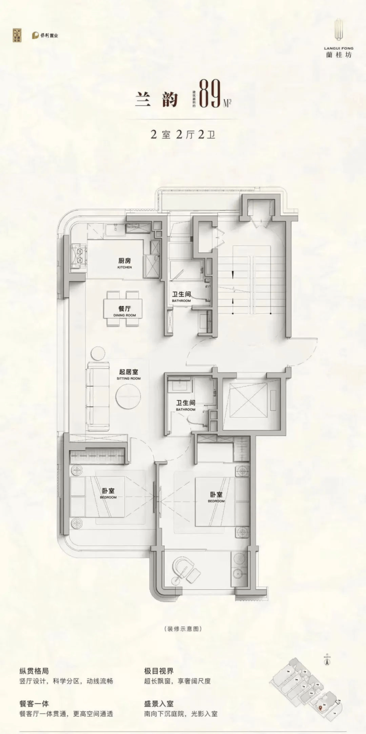 89㎡ 2 房 2 卫:总价1020 万起,均价约 11.7 万 /㎡