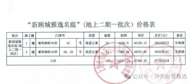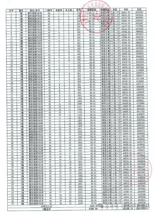 附一房一价表: