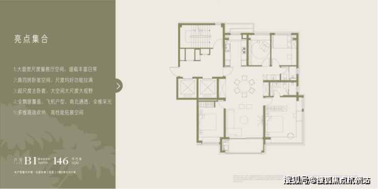 4. 双王牌户型 精准匹配改善需求:本次加推的104㎡千万级绝版三房与146㎡真四房,直击改善家庭痛点。104㎡三房以千万级总价门槛,成为入主核心商务区的稀缺机会;146㎡真四房以三开间朝南的奢阔客厅尺度,碾压同面积段竞品,适配多孩家庭或三代同堂需求。