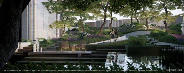 通过设计,将小区景观打造成了立体台地花园,设置缓坡、下沉式花园、台阶等,让整体景观表现出立体层次感,错落有致。