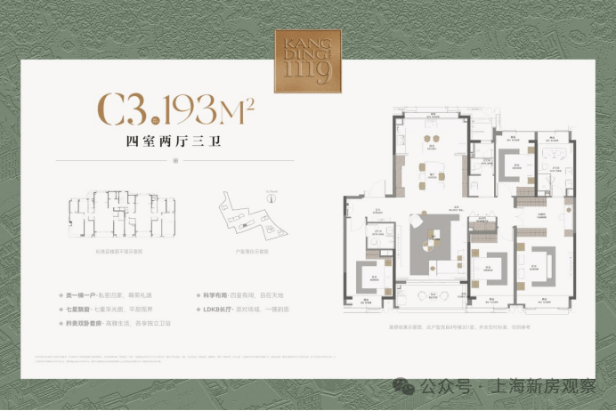 最新消息! 老静安核芯睽违已久的品质豪宅「康定壹拾玖」在售建面约177-238㎡楼王4房;均价17.18万/m²!总价2800-4600万!收官在即,错过不再有!精装车库 约3000平的会所;样板间展示线上火热预约中!