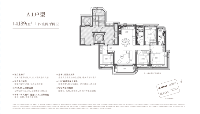 建面约139㎡稀贵4房,总价约1000万级起