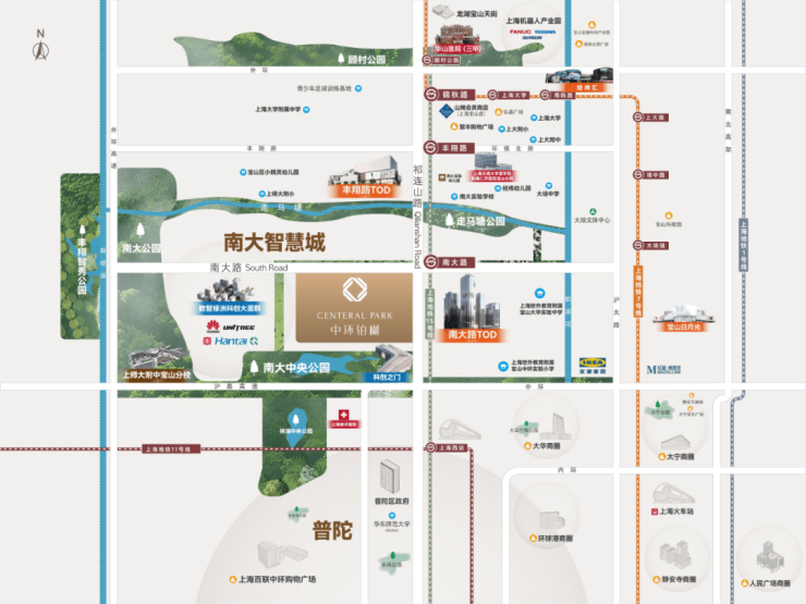 中环铂樾坐拥15号线南大路站(直线约300米),真正实现“地铁到家”的便捷生活。从这里出发, 4站畅达上海西站(新房均价9万+/㎡)、5站轻松抵达铜川路(新房均价10万+/㎡)、9站直达娄山关路(新房均价13万+/㎡),轻松串联城市核心板块。此外,15号线更可快速换乘2/7/11/13/14号线,无缝衔接大宁、虹口、陆家嘴等繁华商圈,商务出行、休闲娱乐皆高效无忧。