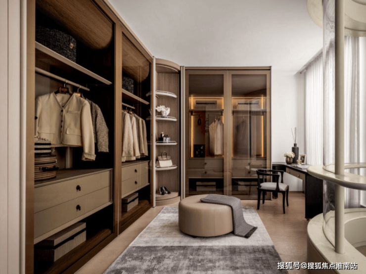 超豪华主卧大面积衣帽间,有专属X空间可以拓展多重功能! 比如办公、阅读、品茶等:
