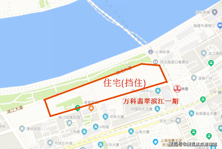 昌邑路上老牌豪宅-万科翡翠滨江一期, 原本开阔直面浦江无遮拦,等新地块上建筑物修造好以后,恐怕是以后要瞰江受阻咯!