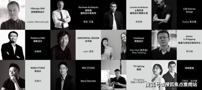 包括外滩华尔道夫酒店的缔造者波特曼建筑设计事务所、来自中国香港的先锋设计机构10Design和Platform,参与设计上海新天地的日清建筑设计,擅长室内空间设计的LSDInteriorDesign、水平线、Linehouse、NONGSTUDIO以及设计外滩建筑群灯光照明的TSlighting等.
