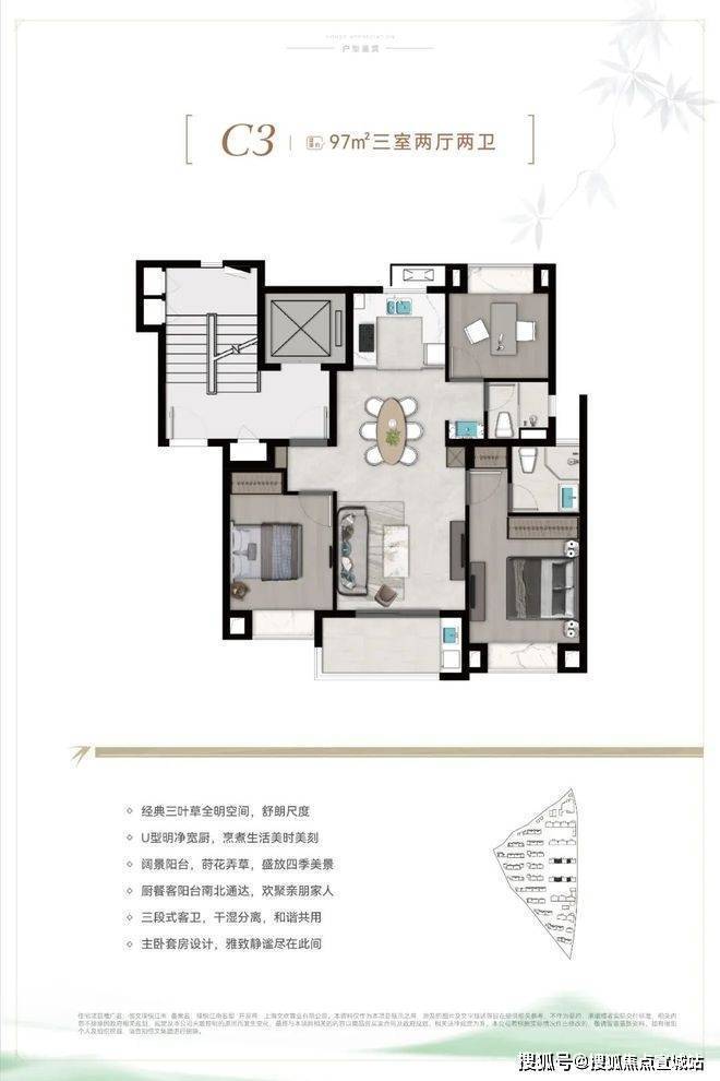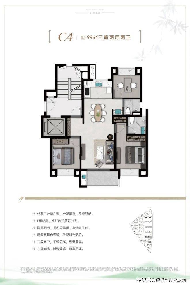 C4户型建面约99㎡3房2厅2卫: