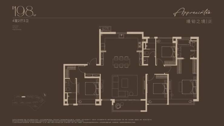 建面约198㎡4房户型,嘉定“收藏级”传世大宅!塔尖人士的挚爱之选!2梯2户的设计,子母双开门礼序入户,私密尊崇门厅,彰显尊崇生活仪式感。