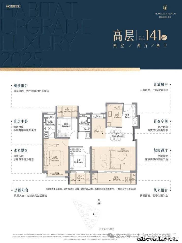 √中叠约146㎡四房大平层空中花园峯范场餐厨客书房无界贯通,形成超级家庭交互场域南向四开间引光入室,全景飘窗框画水岸四季套房主卧,舒享自在的私人场域