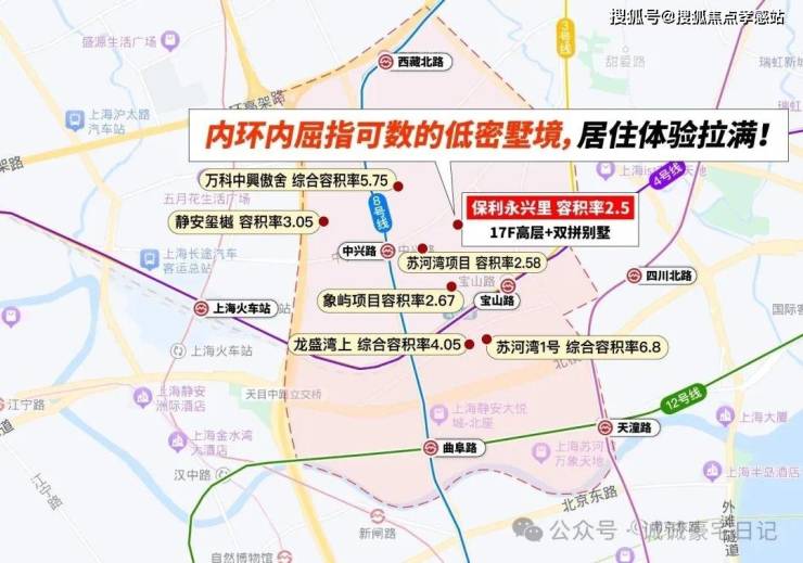 如今,内环内容积率低于2.5的项目已经屈指可数了。黄浦核心多是超高层+别墅的组合,静安内环则多是楼层20F以上的社区。