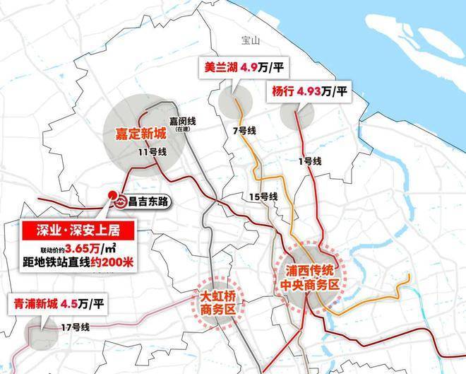 价格优势:项目联动价3.65万/㎡,向前2站的嘉定新城项目价格在5.04万/㎡,仅是多坐几站轨交,价格就大幅度回落,价值不言而喻。