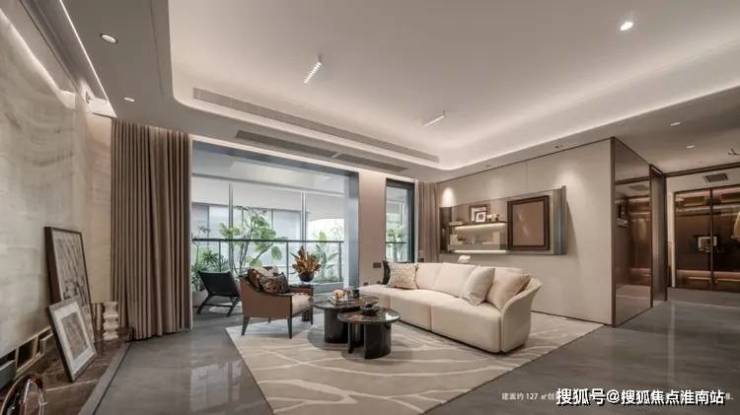横厅与南侧阳台联动形成面积约25㎡的核心社交厅,方正的布局就像整个家庭的“中央广场”,比传统串联式布局更实用,集聚感更强,灵活性也更强,更适配丰富多彩的家庭活动。