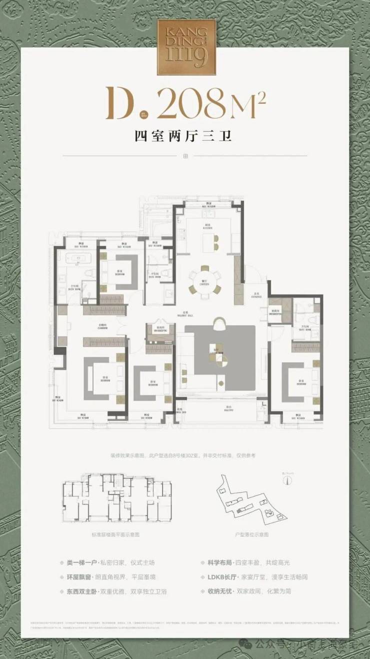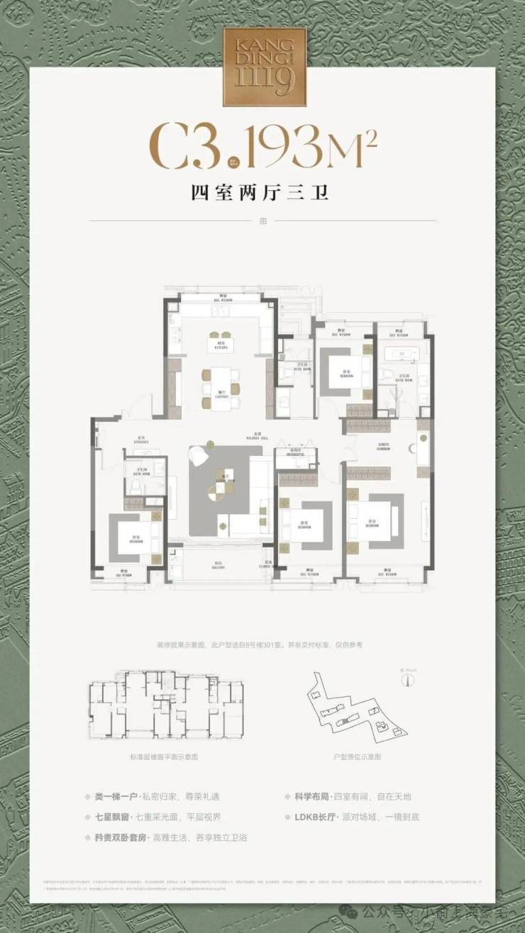 项目建筑立面采用进口白世茂石材与仿古铜铝板,园林景观借鉴徐园造园理念,打造“九曲花街”垂直园林。主力户型为建面约120-238㎡三至四房,全一梯一户设计,得房率超80%。项目周边交通、商业、教育、医疗等配套设施完善,是追求高品质生活的理想之选。康定壹拾玖【售楼热线】✔✔✔营销中心热线☎400-9955-415☎️☎️✅✅✅售楼处地址☎400-9955-415☎️☎️✅✅✅