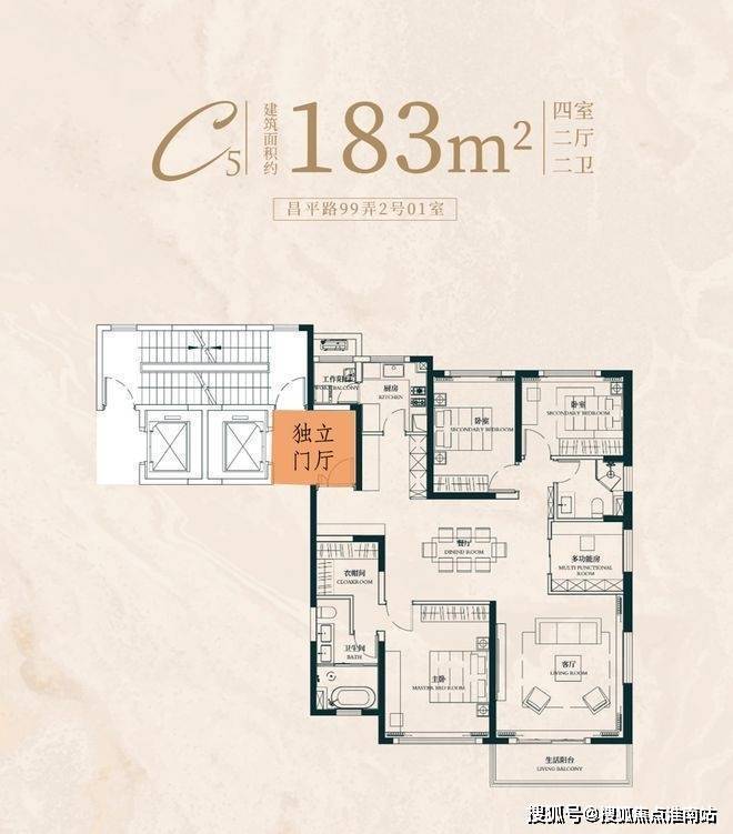 建面约183㎡4房2厅2卫: