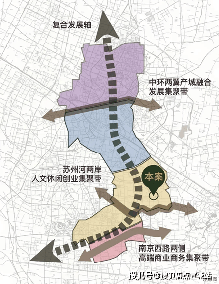 在上海2035总体规划中,静安区提出“一轴三带”的规划空间结构,其中大苏河湾位于一轴一带的交汇处,和南京西路并列成为静安区的规划核心,共同构成顶级的金融商务集聚核,将成为静安区新的发展引擎。