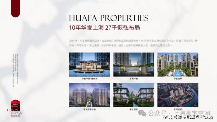10 年来华发上海布局27个项目,打造了华发华润·静安府、苏河世纪、 海上溪云、华发四季半岛、缦云、古美华庭等精品人居。