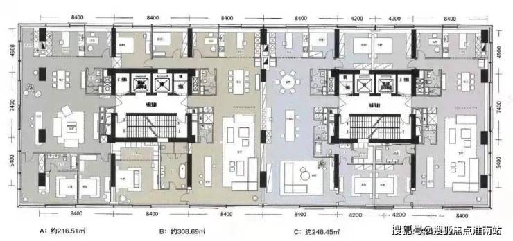 • 面 积:200.96㎡-𝟐𝟓𝟎.𝟏𝟒㎡(交付三房两厅三卫)