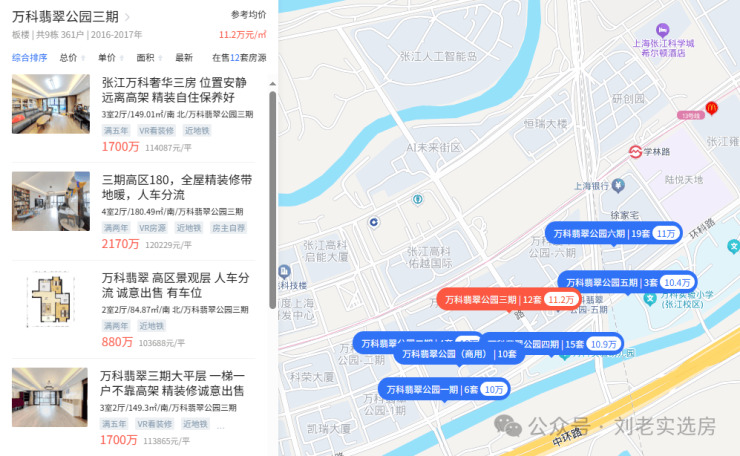 说这话是有依据的,万科翡翠公园就是一个典型案例,被张江园区包围,是张江高知人群改善置业的香饽饽,你再看一下它现在的价格: