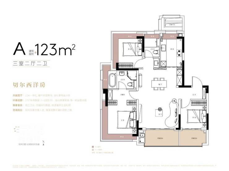 建面约123m3房2厅2卫(A户型-竖厅),约108套(02-09地块)