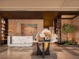 酒店式入户大堂的营造,精选雪山飞狐奢石,高山流水奢石、星白奢石等奢材,将品质感拉满。
