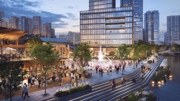 “真如翠谷”规划以“悦”、“赏”、“游”、“聚”四大主题为脉络,相应打造了仓廪市集,中央丘谷,河畔公园和桥水门户四大场所,并通过贯串全域的社区漫步景观带,将这些高品质公共空间有机串联起来,打造成为城绿共生、全龄友好、活力精致的大型高品质社区。