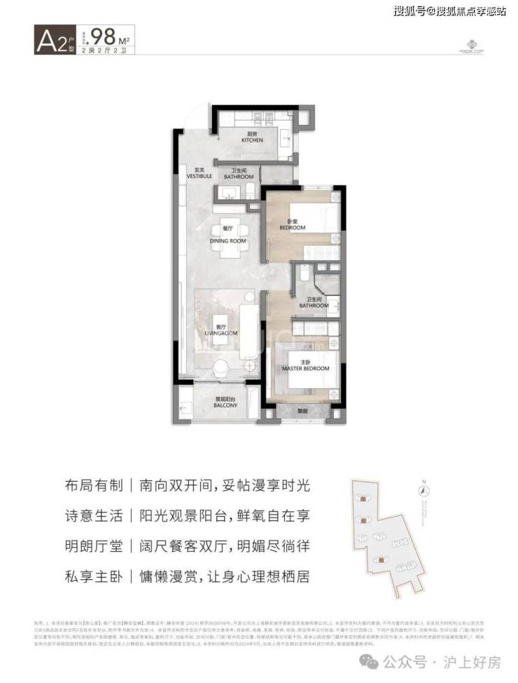 在售面积:94㎡/98㎡/100㎡2房2厅2卫